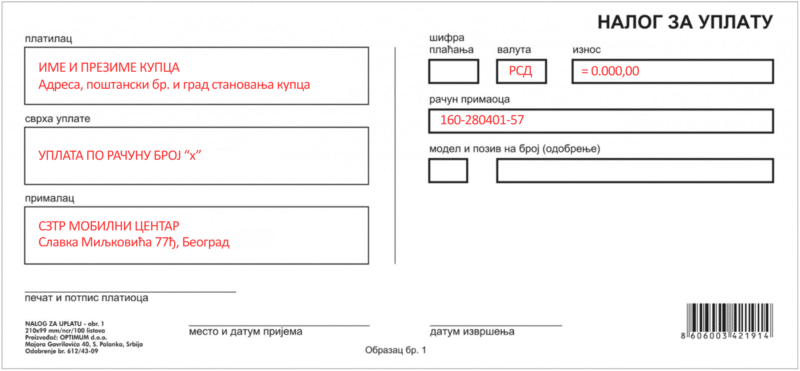 Prilikom uplate rata, bez obzira da li je vrši preduzeće ili kupac obavezno u pozivu na broj upisati broj ugovora.